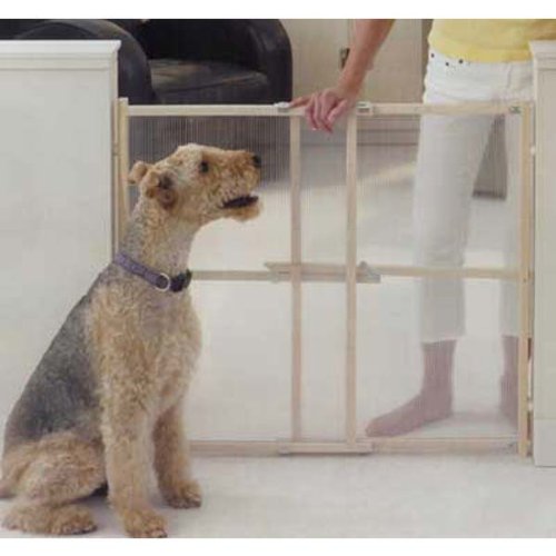 The Clear View Pet Gate XT from North States is ideal for blocking off the top or bottom of the stairs large entryways hallways and protecting kids and pets. This classic wooden gate has see-through plastic panels that make separating kids and pets while still allowing them to have a clear view to the other side. This gate is also equipped with a child safety lock allowing your little one to lean on it without taking any spills.